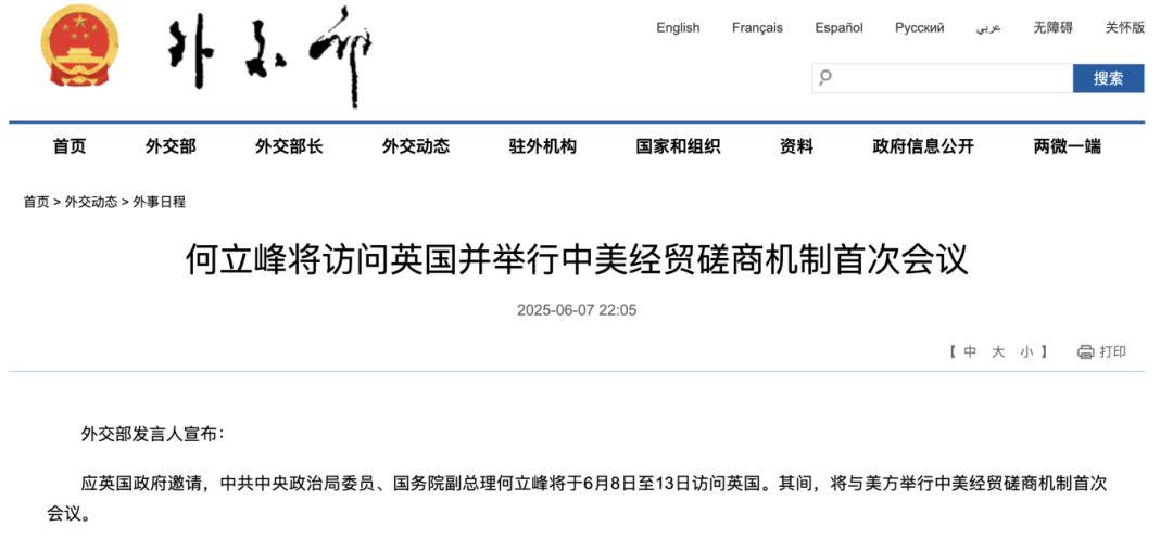 外交部发言人宣布:应英国政府邀请,中共中央政治局委员、国务院副总理何立峰将于6月8日至13日访问英国。其间,将与美方举行中美经贸磋商机制首次会议。