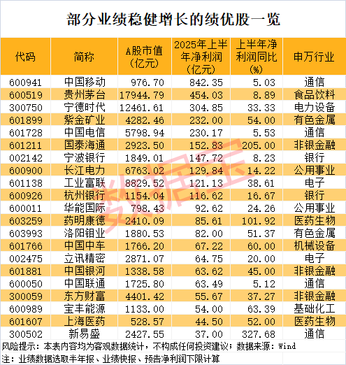 据证券时报·数据宝统计,不含2024年以来上市的股票,根据最新披露的业绩数据,按照半年报、业绩快报、预告净利润下限(无下限则取公告数值)计算,2025年上半年净利润创历史同期新高的股票接近350只。10只股票上半年净利润超百亿元,包括中国移动、贵州茅台、宁德时代、紫金矿业、中国电信等。